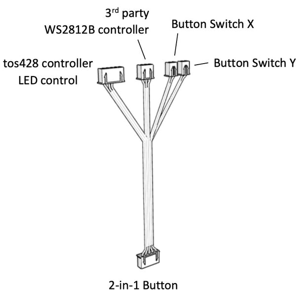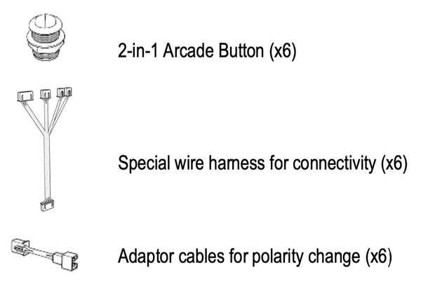 This kit provides a set of TOS GRS 2-in-1 Button Kit together with a special wire harness to support connectivity to a variety of 3rd party controller boards.