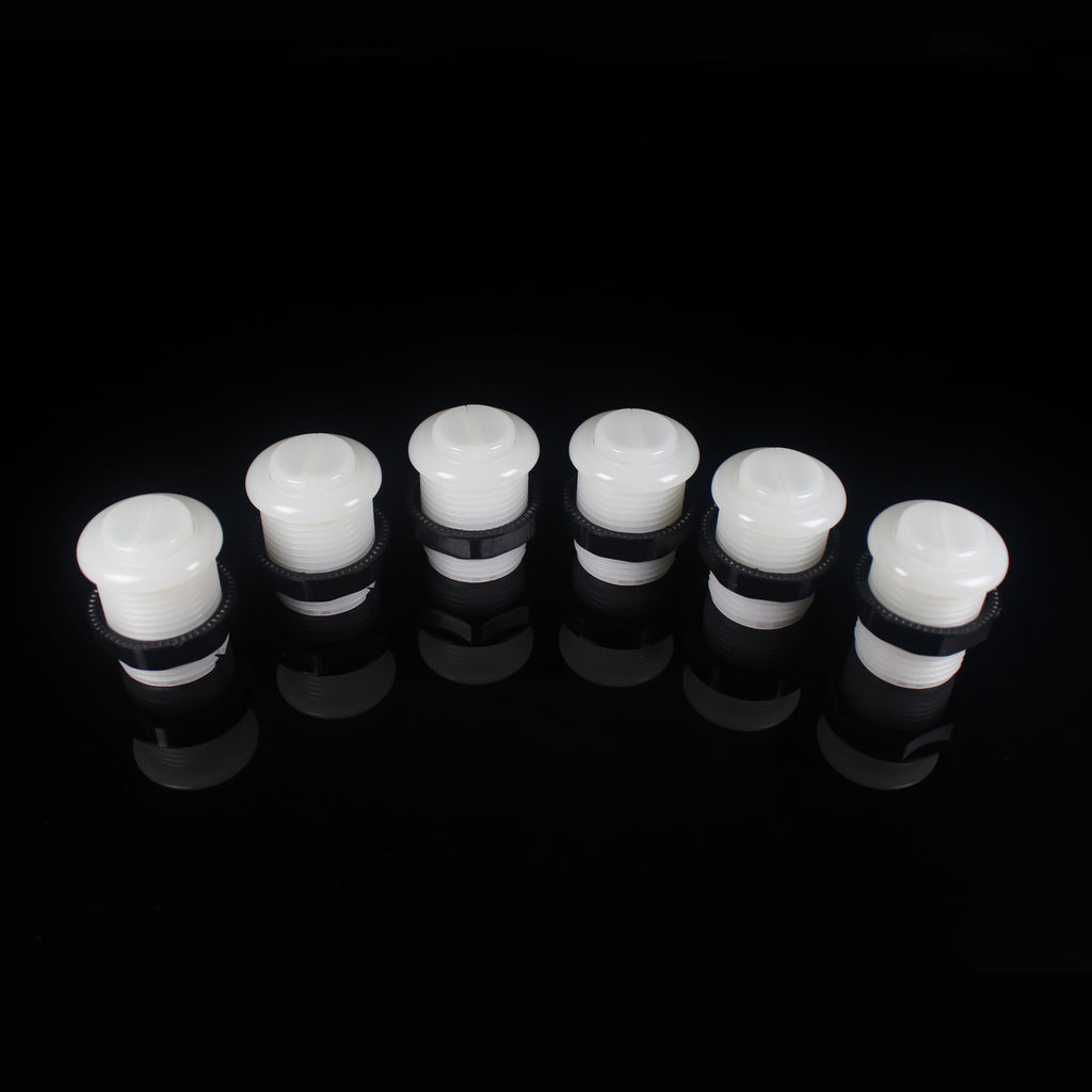 Each 2-in-1 button comes with two integrated switches to control configuration options of an arcade cabinet with the benefit of utilizing just one button hole and by doing so, saving valuable space on the control panel.